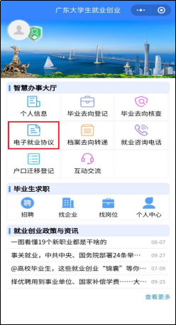 即日起,2025届毕业生与用人单位双向选择,确定聘录用关系的,可通过“广东大学生就业创业”微信小程序申请《普通高等学校毕业生、毕业研究生就业协议书》(以下简称“就业协议书”)。